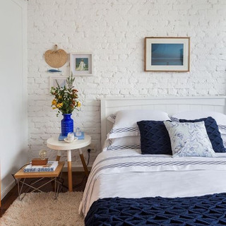 Mavi rengi iç mekanda düşündüğümüzde akla ilk beyaz ile birlikteliği geliyor ve otomatik olarak zihin bizi yazlık mekanlara,sahil evlerine götürüyor.Bembeyaz duvarlar,yeşil bitkiler, beyaz ahşaplar, patineler, keten kumaşlar, etnik desenler ve olmazsa olmaz Bleu-Blanc porselenler.. Belki birkaç renkli güzel çiçek.. Rustik, Coastal, Farmhouses, Marine.. -adına ne dersek diyelim bu stil her zaman favorilerden ve mavi kullanımlarının en doğru seçimlerinden olacak..